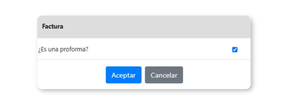 Una vez utilicemos alguna de las opciones disponibles para facturar, por defecto del sistema aparecerá marcada la casilla de “proforma”.
