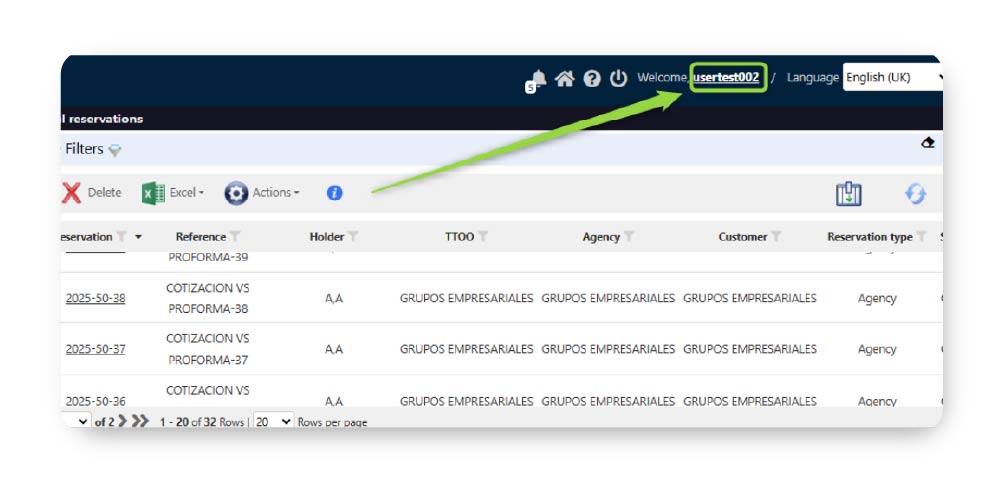 De esta manera, siempre visualizarás el número de registros configurados en las diferentes páginas. Esta configuración, la podrás realizar dando clic sobre el nombre de tu usuario.