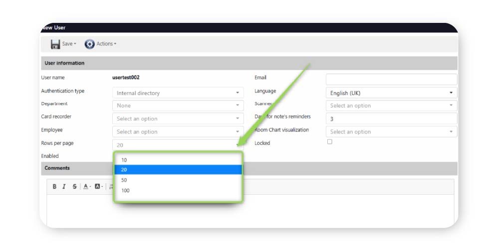 En el siguiente campo, podrás seleccionar el número de filas que por defecto visualizarás en las diferentes páginas de GUEST Hotel Software: